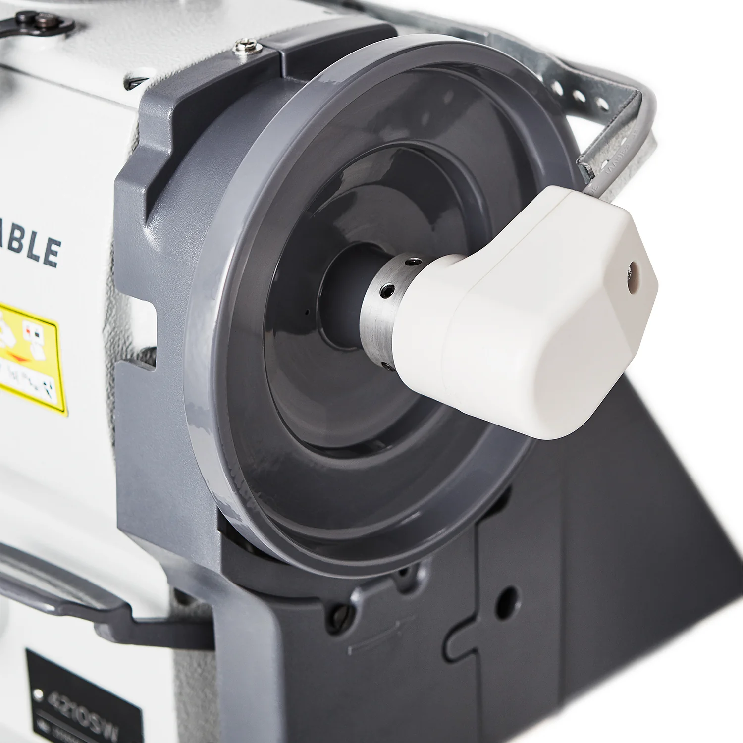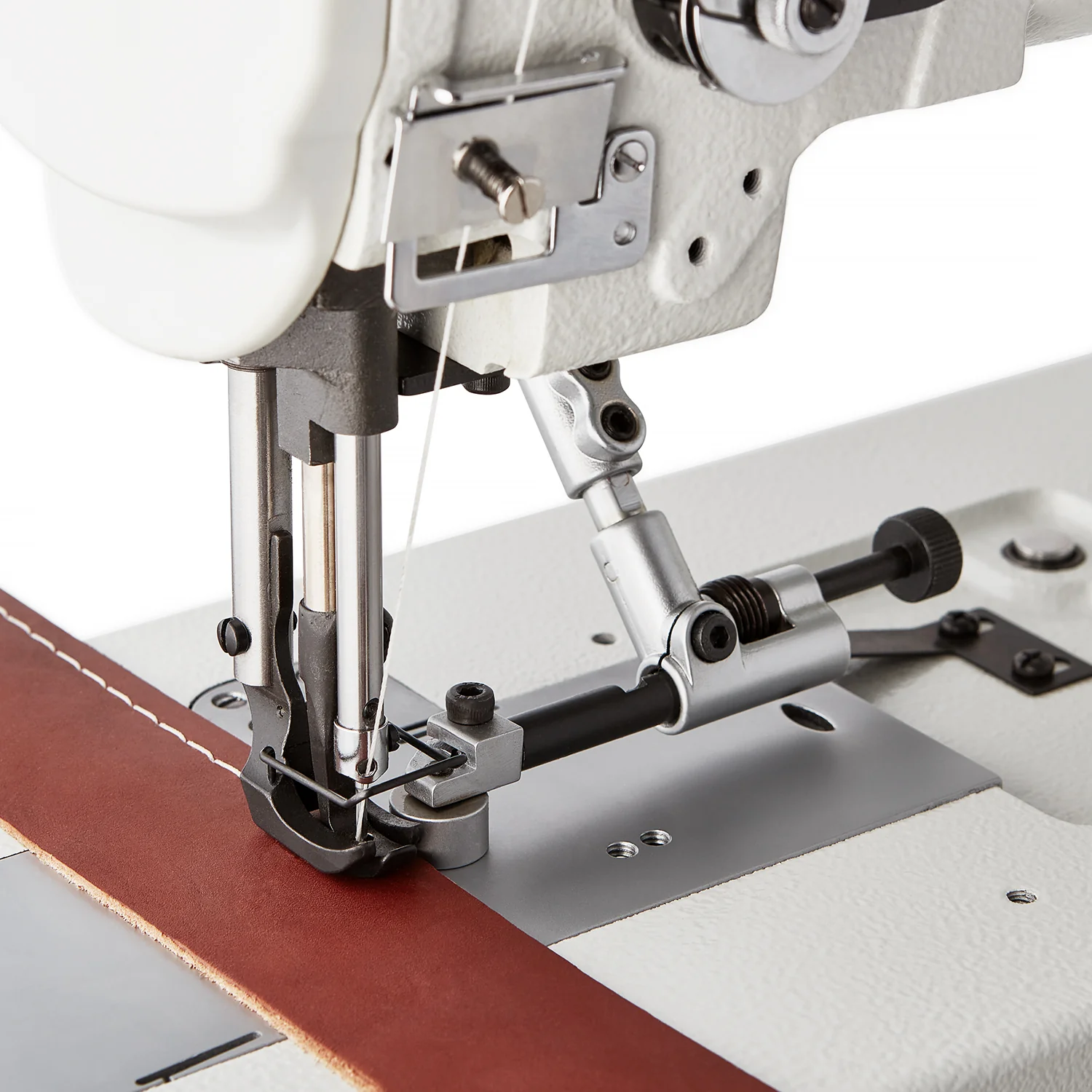 For heavy-duty tasks, the go-to sewing machine is the 4510SW single needle, walking foot lockstitch machine. Its top and bottom feed, along with a foot height adjuster, make it suitable for sewing medium- to heavyweight fabrics like leather, upholstery, canvas, and synthetics. The 4510SW encompasses low noise and vibration design, foot height adjustment, exceptional build quality, reliability, and comes with the industry’s #1 DC servomotor.