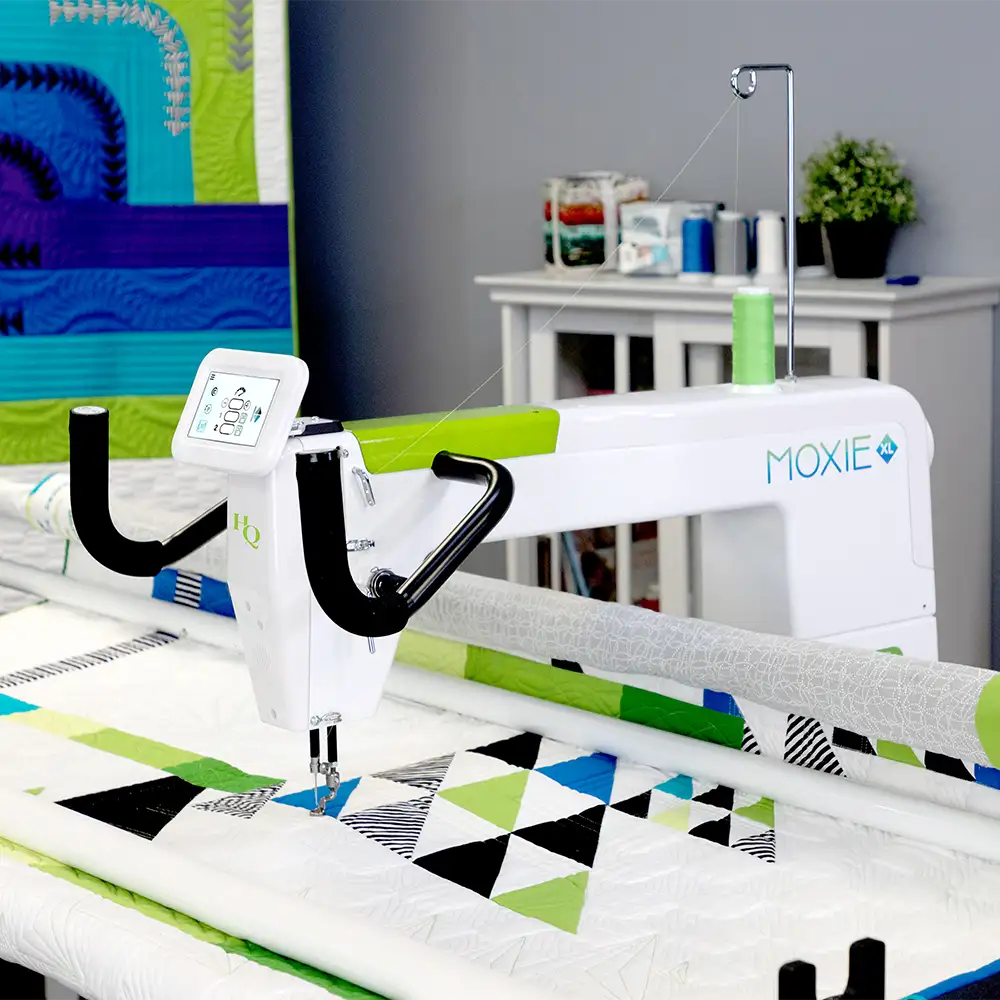 The Moxie XL from Handi Quilter has the same easy-to-learn and oh-so-fun-to-use experience as the original Moxie, but with new features to help you finish your quilts faster and with an incredibly smooth stitching experience. This new design will elevate your longarming experience and take your creations to the next level.